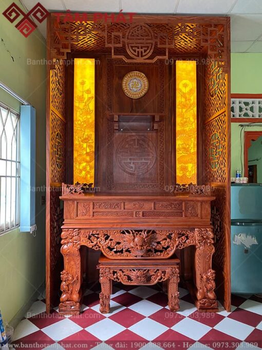 Bàn thờ treo tường mẫu TT2011 được thiết kế khá đơn giản, thiên về sự hiện đại và tinh tế nhưng cũng có sự pha lẫn của truyền thống. Tất cả cùng hòa trộn tạo nên một sản phẩm bàn thờ treo tường Hà Nội đến từ thương hiệu Tâm Phát độc nhất vô nhị.